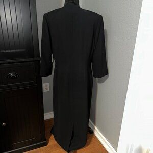 Elegant and timeless Worthington black long wrap-style dress, new with tags from JCPenney. This stunning formal gown features a soft draped silhouette with a sleek satin trim neckline for a modern, polished look. Ideal for formal events, cocktail parties, or evening wear.