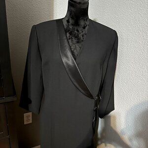 Worthington Dress Size 14 Black Long Wrap Satin Trim Formal Evening Gown NWT