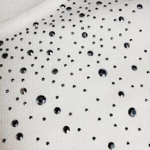 Worthington Rhinestone Embellished Scoop Neck Sweater White.
