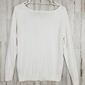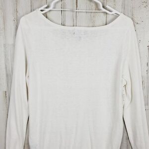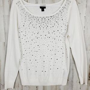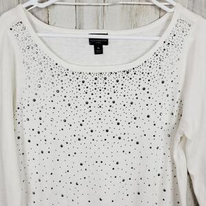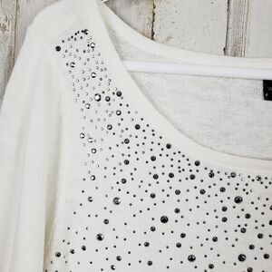 Worthington Embellished Scoop Neck Sweater White Size LP