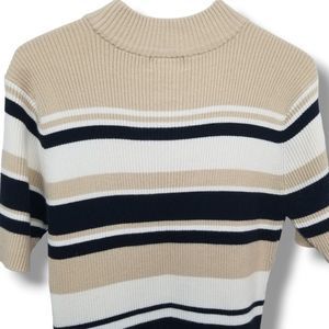 Worthington Essentials Womens Striped Ribbed Mock Neck Short Sleeve Sweater Sz S