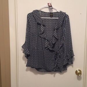 Worthington Floral Abstracted Wrapped Mid Sleeve Ruffled Wrap Top - Size Medium