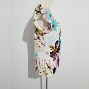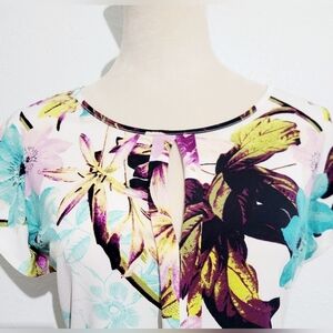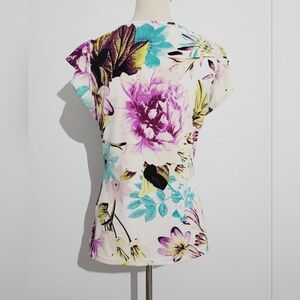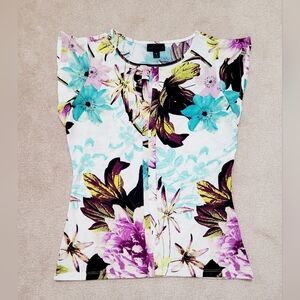 Worthington Floral Flutter Sleeve Keyhole Neck Top Blouse Woman's Size Small