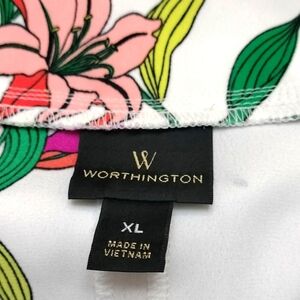 Worthington Floral Wrap Blouse - White with Pink and Green Size XL