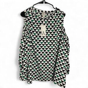 Worthington Geo Print Cold-Shoulder Blouse – Black/White/Green – 2X – NWT