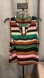 This stylish tank top showcases a sleeveless design with bold horizontal stripes in green and brown hues. The round neckline features a subtle keyhole detail, adding a touch of elegance to its modern look. Crafted from a silky fabric, this top offers both comfort and visual appeal.