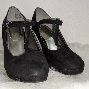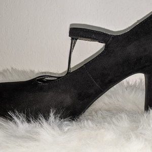 Worthington Black Velvet Henley Pumps with adjustable strap.