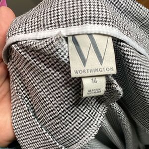 Worthington Houndstooth Pants grey black White Side Slit Hems