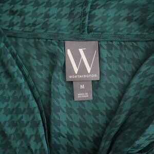 Worthington Houndstooth Satin Blouse with Neck Tie | M