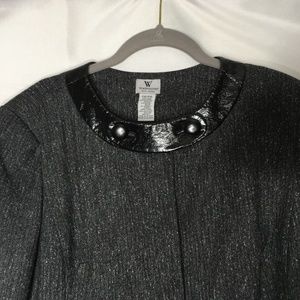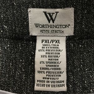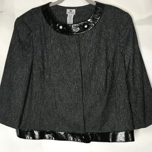 Stunning jacket/blazer by Worthington. This item is a size Petite XL with stretch. Hidden snaps to close the jacket with fantastic synthetic neckline and hemline to add some pop to the jacket. Truly a classy item. All measurements were taken in a flat lay position and are approximately pit to pit 22", neckline to hemline 18" and arm length 16". Please see photos and let me know if you have any questions or would like any additional measurements.