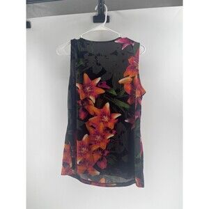 Worthington L Black Tropical Floral Sleeveless Blouse