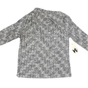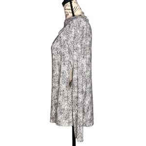Worthington (L) Scribble Geometric Asymmetric Ruched Neck Long Sleeve Blouse