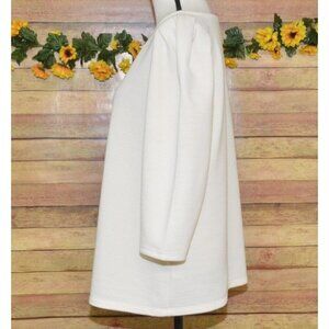 Worthington Ladies XL Neutral Cream Boxy Ribbed Blouse 3/4 Puff Sleeve Modest