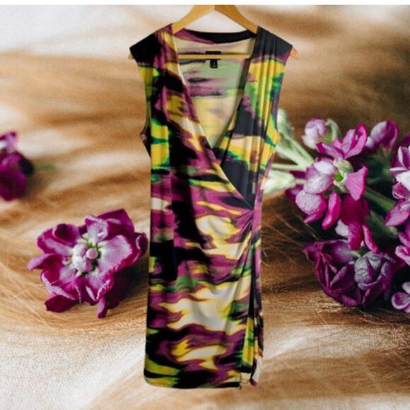 Worthington Large sleeveless faux wrap v neck polyester blend stretch dress. Gently used. No rips stains snags.