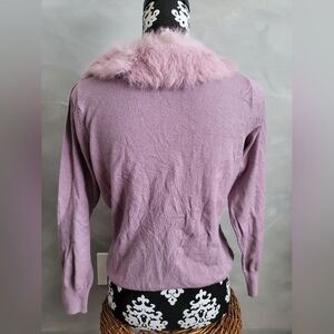 Worthington Lavender Purple faux fur Collar Button Close Cardigan Size L