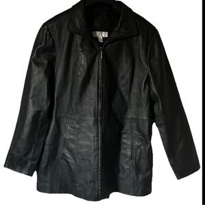 Worthington Women's Genuine Black Leather Jacket Full Zip Classic Size Large