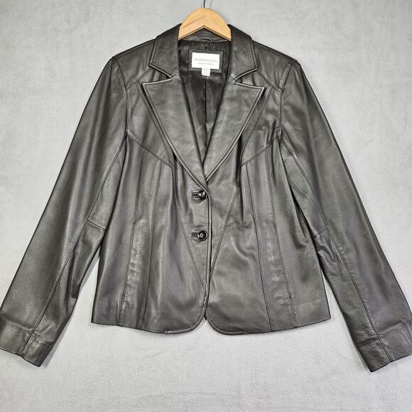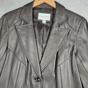 Worthington Leather Lambskin Jacket Women's Size Medium Dark Brown Lined Pockets