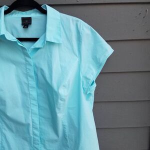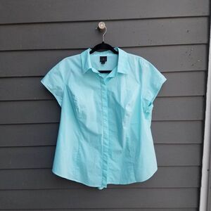 Worthington Light Blue Short Sleeve Cotton Button Down Blouse size OX