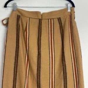 Worthington Linen Blend Midi Wrap Skirt Striped Brown Yellow Slit Size 6