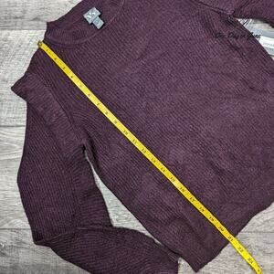 A Worthington creation, this long sleeve knit sweater in a bold, unapologetic red is untouched, pristine as morning dew. Crafted from a blend of polyester and spandex, it hugs the body, a promise of warmth and elegance in one uncompromising garment.