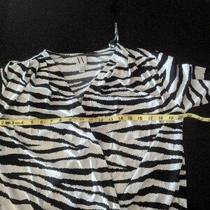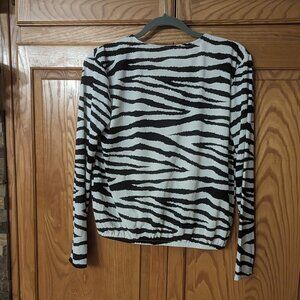 This is pretty and classy looking, in Worthington style. Satiny soft, this zebra print will make an entrance into any event. The long sleeves and bottom have elastic, to stay where you put them. Snap closure to keep your bra (or lack thereof) from showing. Excellent condition and waiting to be yours! Visit my closet for other animal prints, and bundle for a 15% discount!
