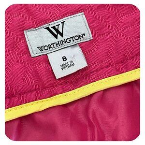 Worthington Mini Skirt Barbiecore Pink Textured Zippered Pockets Women's Size 8