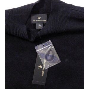 Unveiling simple elegance, this Worthington sweater features a sophisticated mock neck design and sleeveless silhouette. With its soft black knit, this XL piece brings both comfort and refinement to any wardrobe ensemble. Stylishly versatile for layering, it’s crafted with attention to both form and function, embodying subtle charm and practicality.