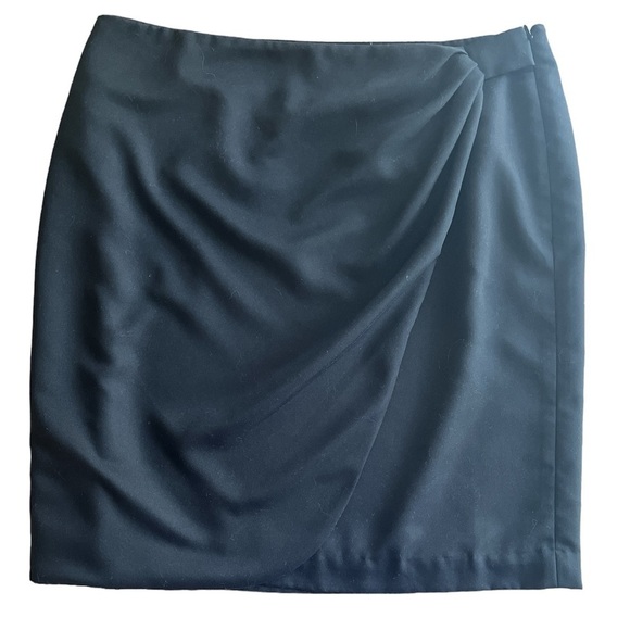 Worthington Mock Wrap Skirt Size 18 Black Side Zipper Lined Front Panel