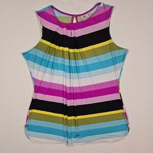Worthington Multicolor Striped Sleeveless Blouse Summer Brights Size L