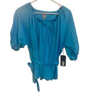 Worthington NWT cotton blend puffy sleeve belted vneck pleated medium