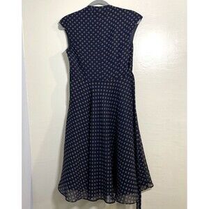 Worthington Navy Blue Polka Dot Ruffle VNeck Dress Size 6P Vintage inspired Midi