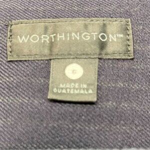 Keywords: Worthington skirt, navy pinstripe, pencil skirt, workwear, office outfit, business casual, corporate style, classic skirt, tailored fit, wardrobe staple, lined skirt, professional chic, timeless essential, business attire, minimalist outfit, structured skirt, modest workwear, preppy office look, capsule closet