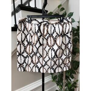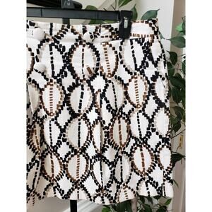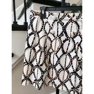 Worthington Pencil Skirt Womens Size 12 White Geo Print Cotton Stretch Back Zip