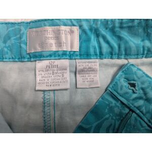 Step into comfort and color with these charming capri pants from Worthington. Designed with a flattering fit and a pop of floral flair, these pants feature a cool-toned blue base with a light blue floral print. The stretch fabric and cropped cut make them perfect for warm-weather days or casual outings.