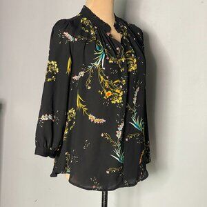 Worthington Petite Floral-Print Split-Neck Blouse Petite Large