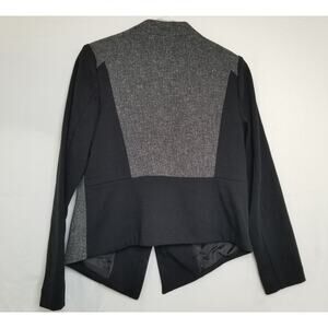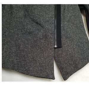 Vintage - Worthington Petite Moto Jacket; Size PM; Material - Body Gray - 79% Polyester, 19% Rayon, 2% Spandex, Body Black - 73% Polyester, 23% Rayon, 4% Spandex, Lining - 100% Polyester; Care - Machine Wash Cold; Made in Vietnam; Knit Asymmetrical Zipper Hem, Short Tweed Solid, Long Sleeves, Zipper Up Front, Shoulder Pads,