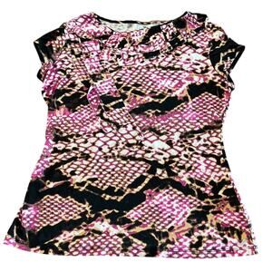 Worthington Petite Size Small Multicolor Print Slinky Knit Top Ruffles Office