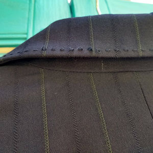 NWT single breasted stretch career wear blazer by Worthington. Navy blue with blue and tan pin stripes and decorative stitching around hem. Slight peplum ruffle on back. Some of the decorative stitching is a little loose around the back collar - please see photos for details.