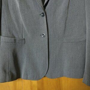 Women's gray two button front Worthington Petite Stretch blazer career classic piece measures