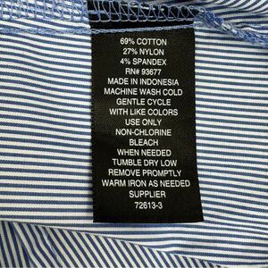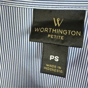 Worthington Petite Striped Faux Pleat Button Front Shirt Blue White Small