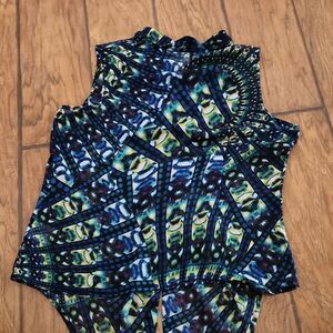 women's size petite large made by Worthington. Blouse is sheer with stainglass design.