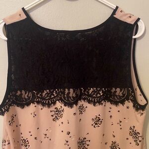 Worthington Pink Floral V-Neck Sleeveless Top with Black Lace [Size: L]
