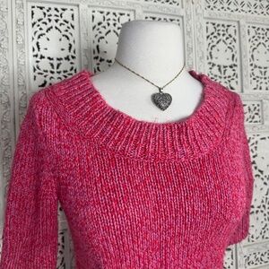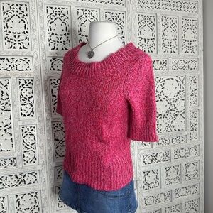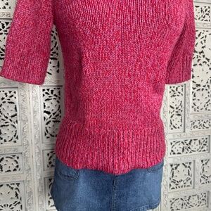 Worthington Pink & Red Marled Metallic Chunky Short Sleeve Sweater Sz Medium