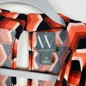 Worthington Plus Size 2X Geo Print Cowl Neck Sleeveless Blouse Top Orange