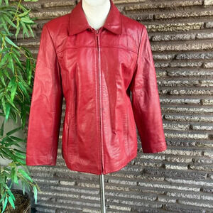 Worthington Red 100% Leather Full Zip Jacket Size L