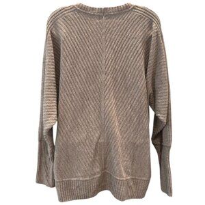 Size: Women’s Large Color: Beige/Taupe Material: 100% Acrylic Style: Oversized fit with dolman sleeves and wide ribbed cuffs Condition: Good used condition – no stains or holes