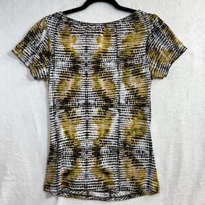 Worthington S Abstract Dot Print Stretch Ruched Top Yellow Chic Y2K Girlhood