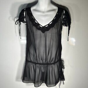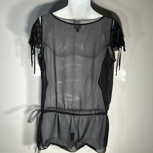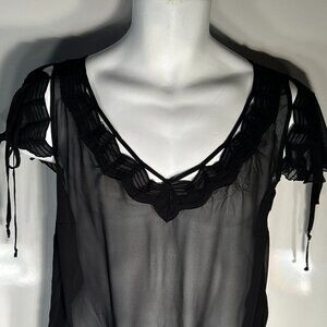 Worthington SZ XL Black Sheer Peplum Tunic Top Boho Dark Romance Goth Whimsigoth
