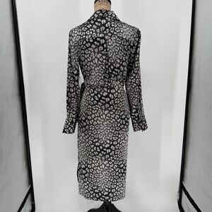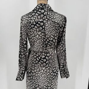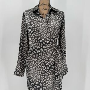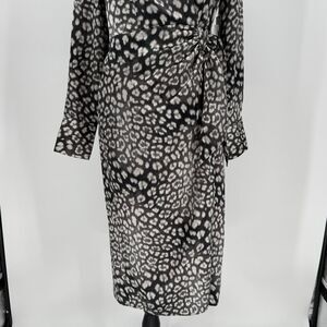 Worthington Satin Wrap Midi Dress Long Sleeve Animal Print Gray Women Small NWT