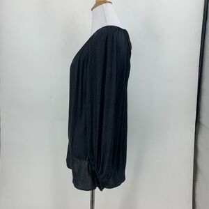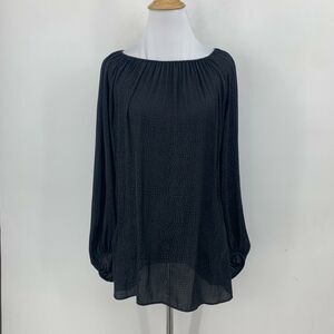 Worthington Semi Sheer Blouse Womens Plus Size 0X Spotted Puff Long Sleeves Top
